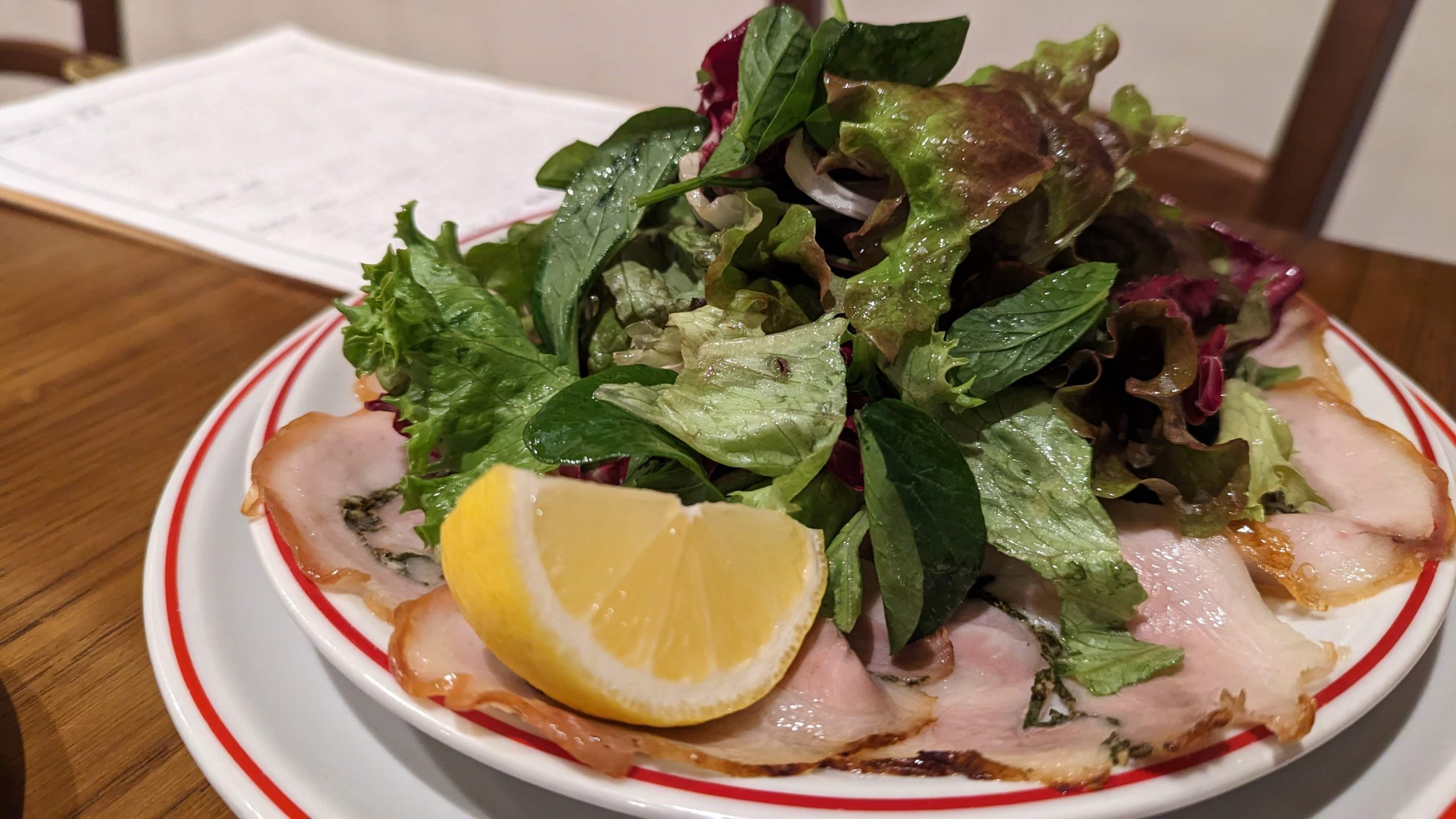 - 生ハム・サラミ・自家製ハムの盛り合わせ ¥2,200